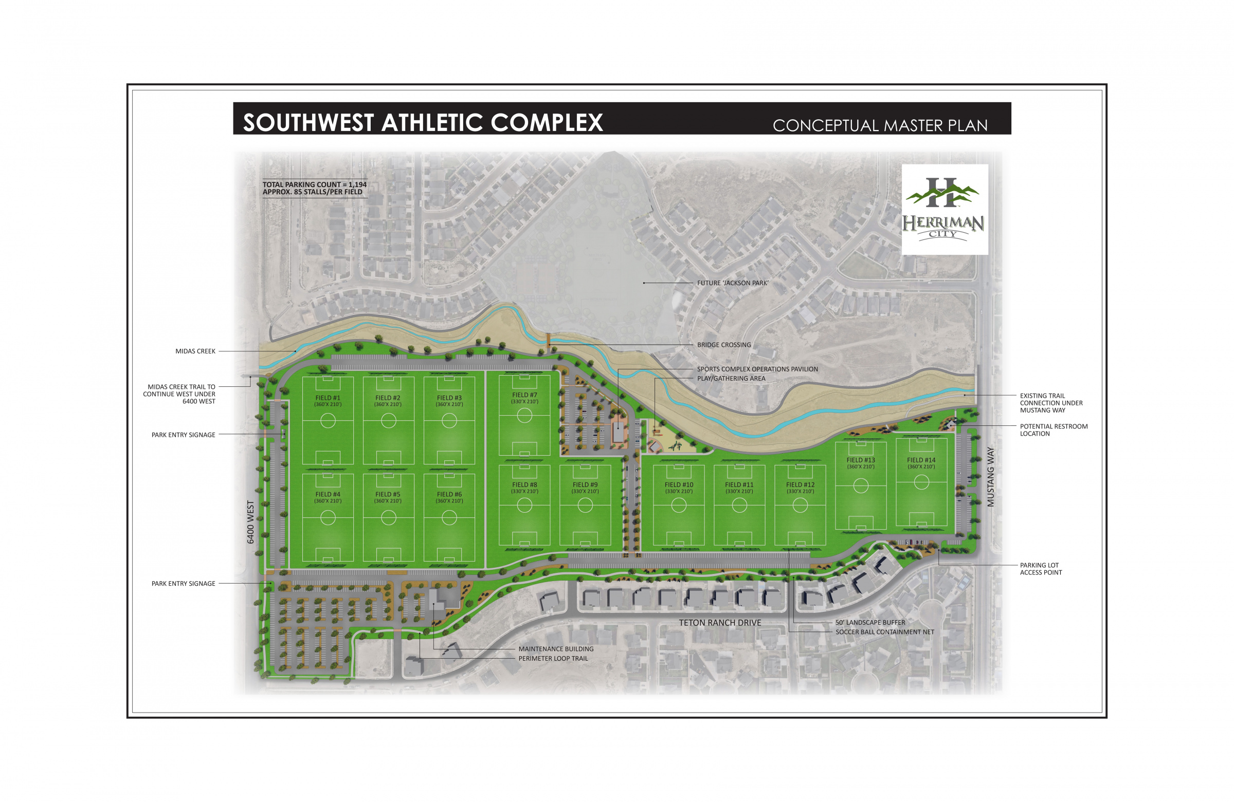 Herriman’s youth sports leagues currently face a shortage of available playing fields, sometimes requiring teams to travel to other cities. If constructed, the athletic complex would help address these needs and provide space for regional and national tournaments.