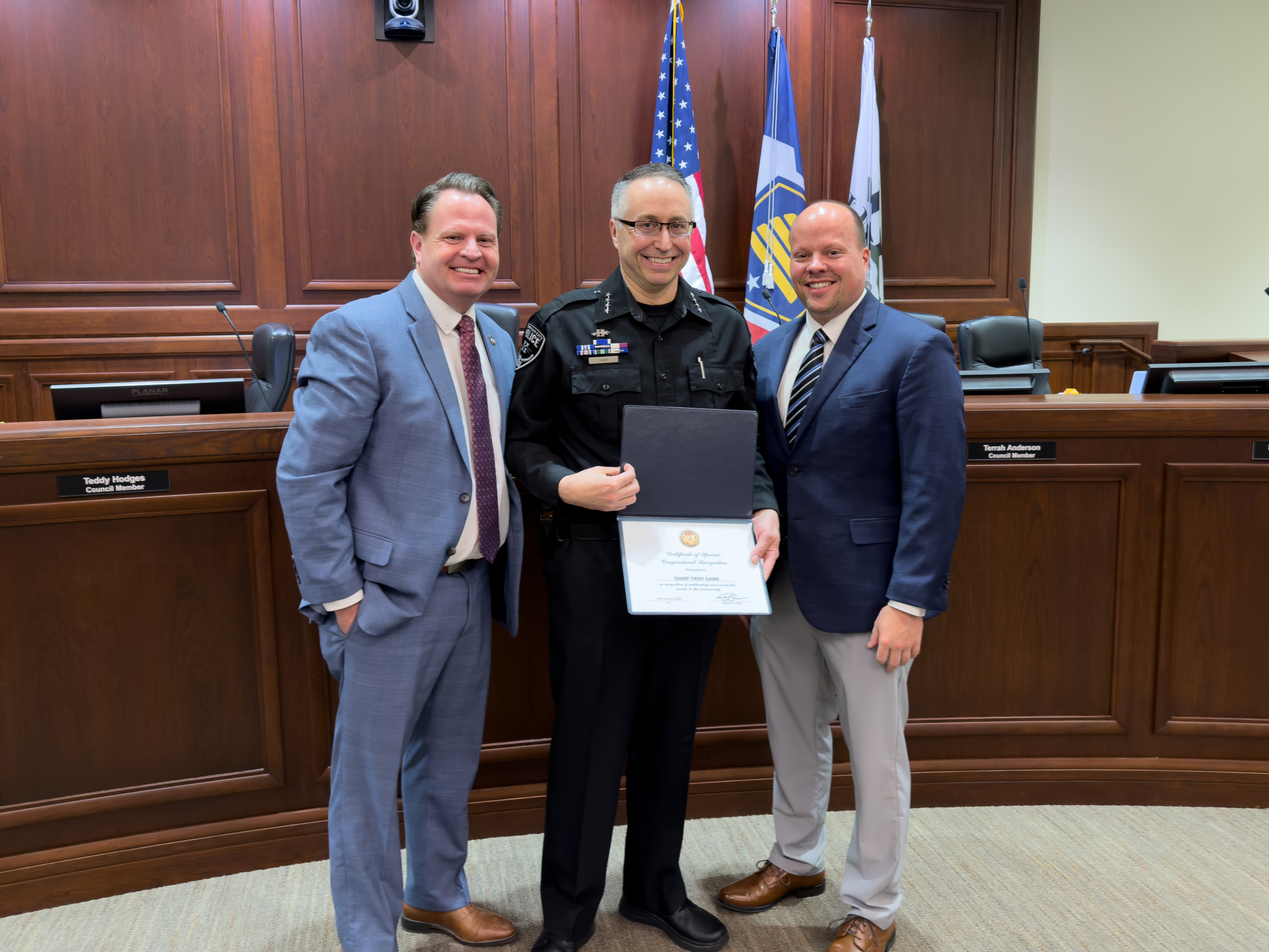 The City Council, City Administration, and a representative from U.S. Congressman Burgess Owens' office recognized Herriman Police Chief Troy Carr for his service to the community ahead of his retirement this coming weekend. Carr was sworn in as HPD's first chief and established the department in 2018, leading HPD as a highly respected and trusted law enforcement agency.