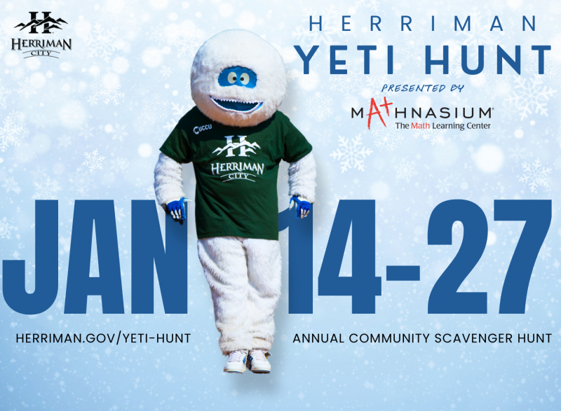 The Herriman Yeti loves playing hide-and-seek and loves to give away prizes! During our annual hunt, which now takes place in January, hunters can participate in a scavenger hunt to find the Yeti.