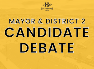 Mayor & District 2 Candidate Debate Oct 6, 2021 06:00 PM - 08:00 PM The election candidates for Mayor and City Council District 2 will participate in a debate on Wednesday, October 6th, starting at 6:00 PM in the Community Room at City Hall. Question/Topics Request... |