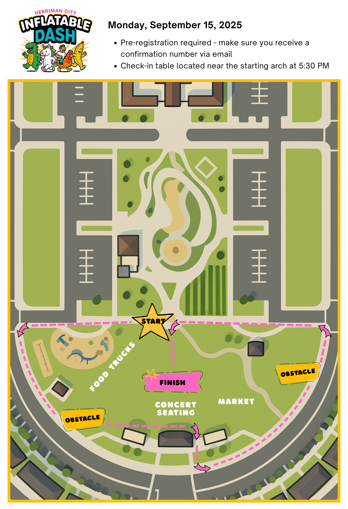 Get ready to experience the silliest fun run you'll ever be a part of with the first-ever Herriman City Inflatable Dash! Monday, September 14th, participants will put on their wackiest inflatable costumes and get ready to walk, skip, or wobble through the short course at Crane Park (0.4 miles - map). This is a short, lighthearted event for all ages, no timing chips, no pressure, just big laughs, silly challenges, and community fun.